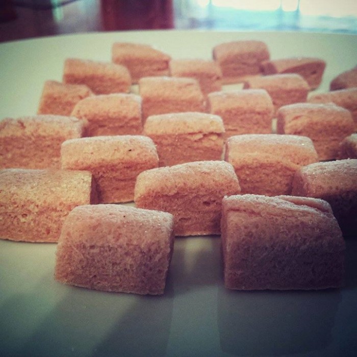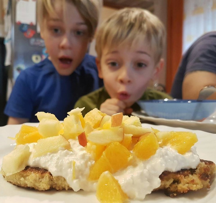 😁 amit utána kevés kókusz zsíron kis halmokban kisütsz. Mi tetejére stevias citromos túrót és gyümölcsöket tettünk.