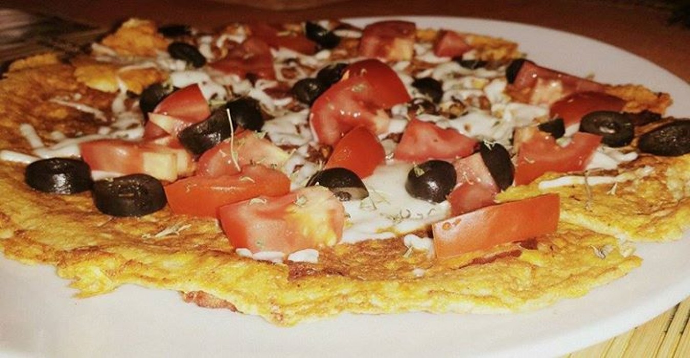 himalájai sót összekeverünk. Kókuszolajon mint a palacsintát csak fedő alatt átsütjük. Miután megfordítottuk, saját ízlésünk szerint ízesítjük, ezen éppen paradicsom, olajbogyó, mozzarella, oregano van. A sajt olvadásáig fedő alatt tovább sütjük, tányérra csúsztatva mind megesszük. Akár reggeliről, akár ebédről van szó, aki kóstólta kérni fog mééég.